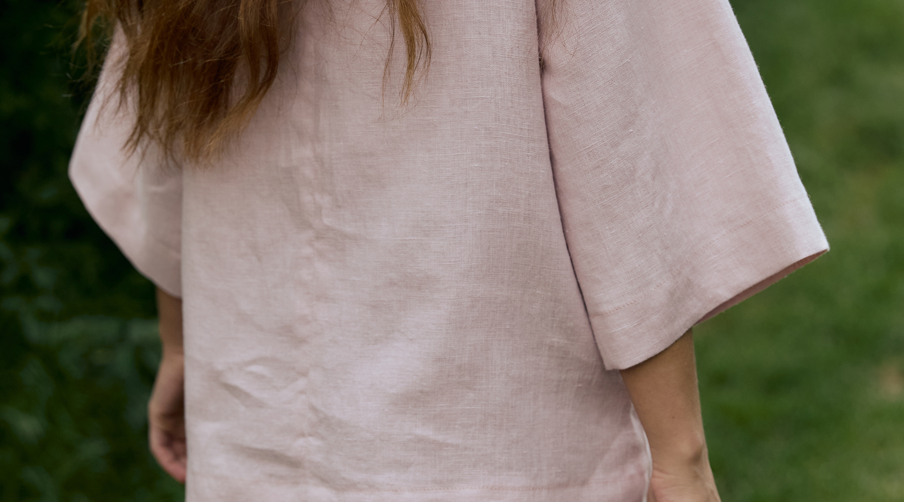 Rochie Din In Cu Mânecă Trei Sferturi Anne Roz Pudrat