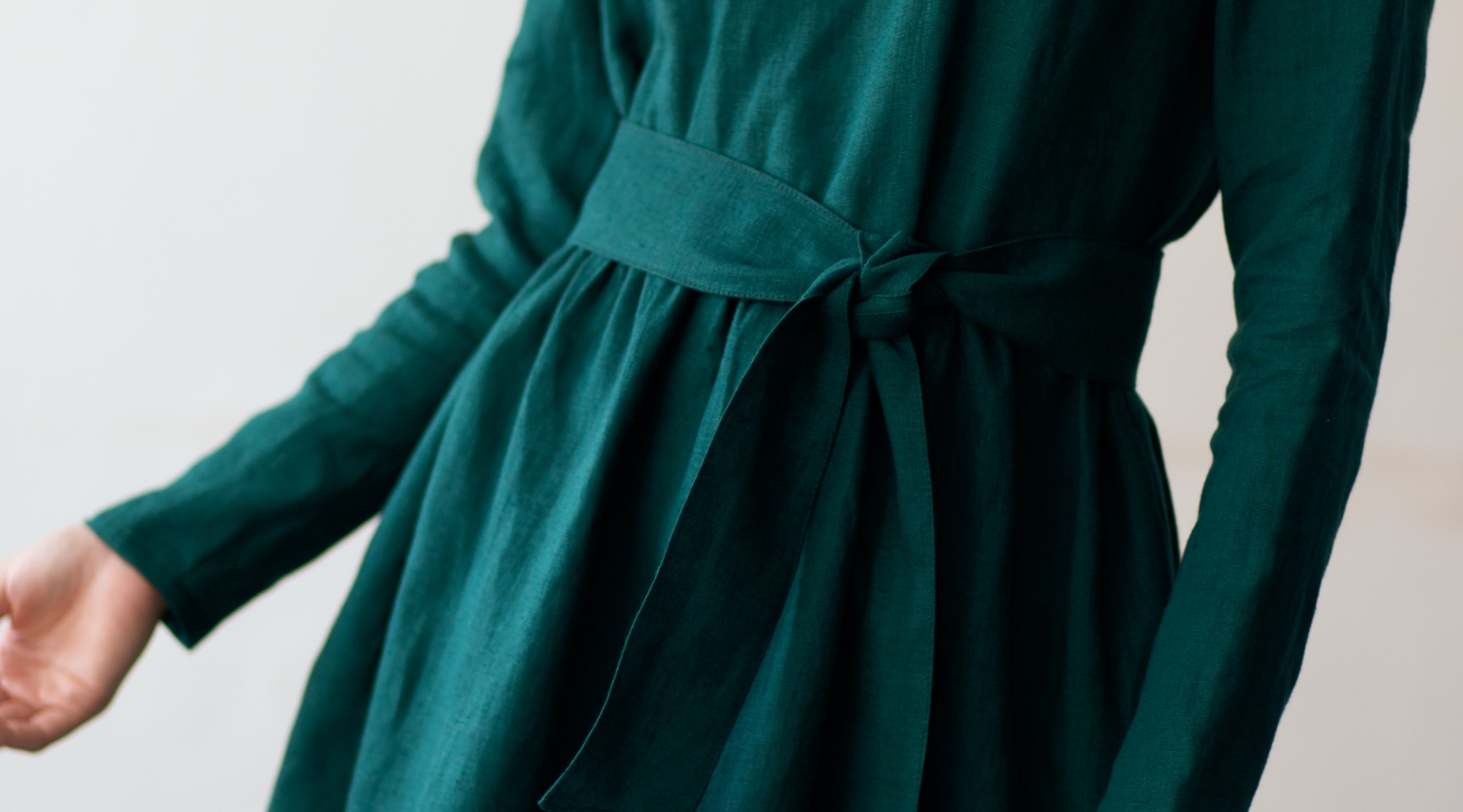 Rochie Din In Cu Mânecă Trei Sferturi Anne Galben Miere
