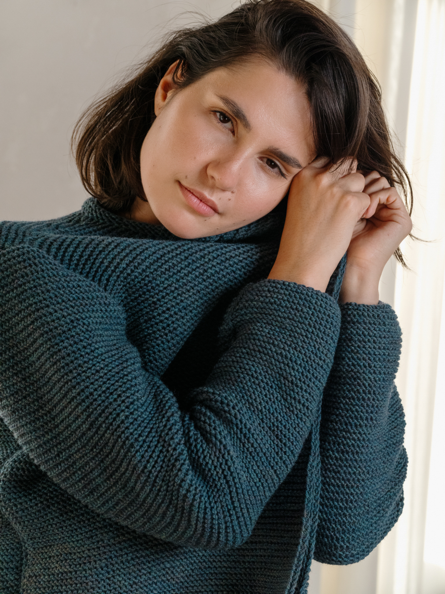 Hand-knitted products are hand-washed with gentle movements and dried horizontally.